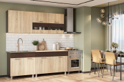 Кухня «Босфор» – это доступный прямой кухонный гарнитур. Модули выполнены в цветах «дуб венге» и «дуб сонома». В комплектацию входят напольные и навесные шкафы, а также столешница длиной 1200 мм и толщиной 26 мм в цвете «дуб сонома», на шкаф-мойку столешница в комплект не входит.