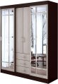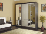 Шкаф-купе «Маэстро» в цветах «венге» и «лоредо» — это стильный и функциональный элемент интерьера. Он оснащён двумя дверками на роликовых направляющих, декорированных зеркалом, и тремя выкатных ящиками. Также есть отделение с распашными дверками, где расположены вместительные полки для трикотажа и белья. Фасады дополнены эргономичными ручками, а корпус и фасад изготовлены из ЛДСП.
