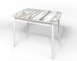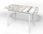 Стол обеденный раздвижной "Флорида" стекло с фотопечатью СМ-2, ЛДСП белый, опора массив изогнутая белая