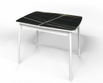 Стол обеденный раздвижной "Флорида" стекло с фотопечатью СМ-3, ЛДСП белый, опора массив изогнутая белая