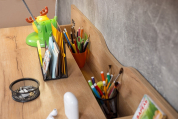 Письменный стол из коллекции «Лойс» максимально адаптирован под потребности современных детей, которые проводят много времени за своим рабочим местом. Откидная часть скрывает нишу для хранения и отверстие под провода от компьютера. Четыре ящика на шариковых направляющих послужат местом для канцелярии, книг, предметов для творчества, личных вещей ребенка.